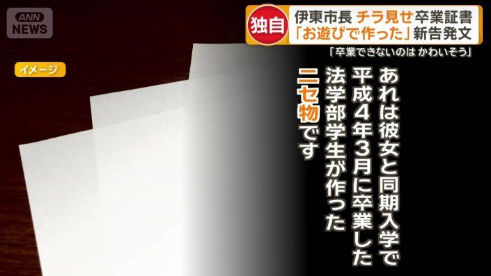 【感動】伊東市市長の疑惑の卒業証書、友情の結晶だったと判明