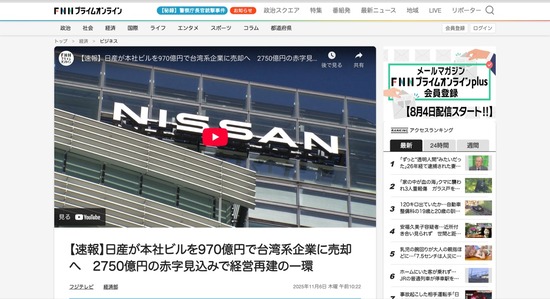 【経済】日産、本社ビルを970億円で売却へ