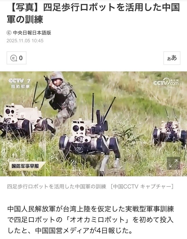 中国軍、四足歩行ロボットを実戦配備へ