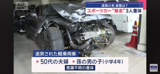 GT-Rで時速100km超えの暴走をして軽に追突、祖父母と孫重体にさせた46歳の無職男、近所のコンビニはすべて出禁でトラブルが絶えなかった模様…