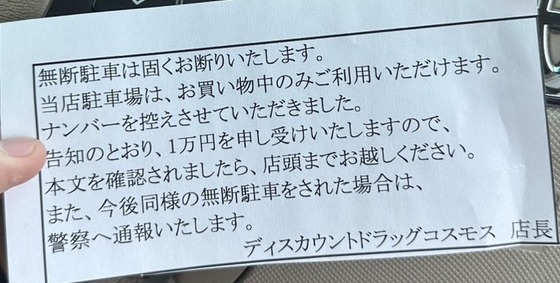 【悲報】ラーメン店の駐車場に停めたと思ってたのに隣のドラッグストアから「罰金1万円」を請求された人が話題に…これは支払い義務はある?ない?