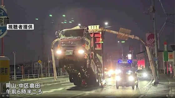 【悲報】ダンプが荷台を上げたまま走った結果wwwwwww