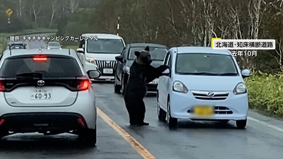 【北海道知床】恐怖!!巨体ヒグマが車を襲撃している画像がこちら!!