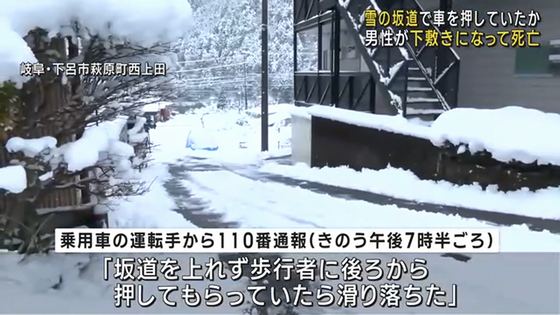 【悲報】老人(73)「車が雪で滑って立ち往生してるな、助けたろ!」→