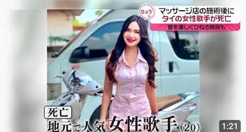 【悲報】女性歌手さん タイ式マッサージ後に死亡…