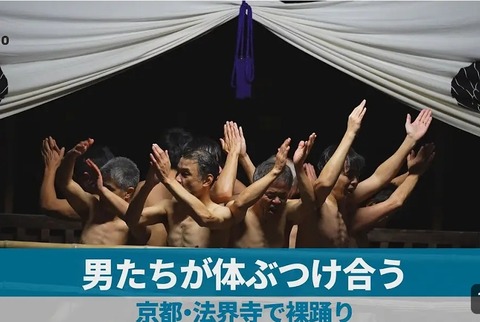【画像】京都・法界寺で「裸踊り」、体を激しくぶつかり合う