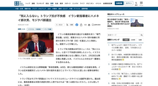 「気に入らない」トランプ大統領、イランの新指導者モジタバ師に不快感