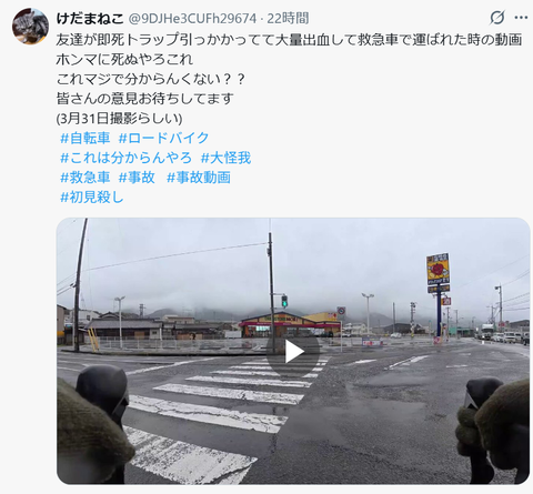 【閲覧注意】歩道を走っていたロードバイク民、とんでもない罠に嵌まってしまうwwww