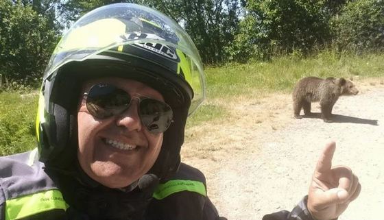 【悲報】バイク乗りのおじさんがヒグマと自撮りした結果wwwwwwwwwwww