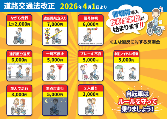 【画像】4月からの自転車の違反の反則金ってこんな取られるのかよwwwwwwwww