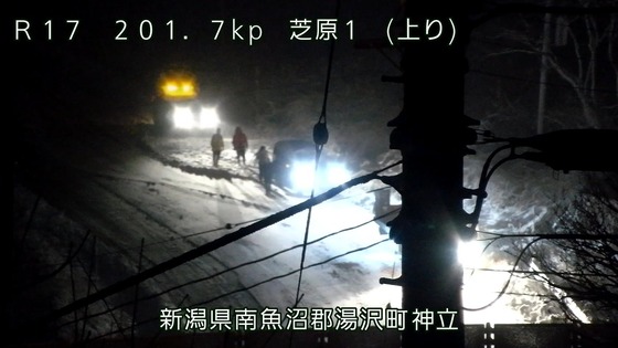 ノーマルタイヤ装着車、新潟の雪道で立ち往生