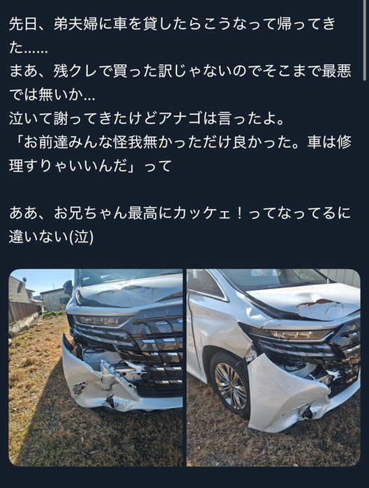 【画像】弟夫婦にアルファードを貸した結果wwwwwwwww