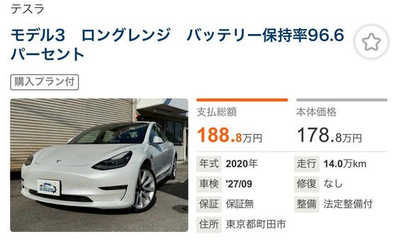 【画像】中古のテスラモデル3が200万円で買えるぞ!お前ら急げ!