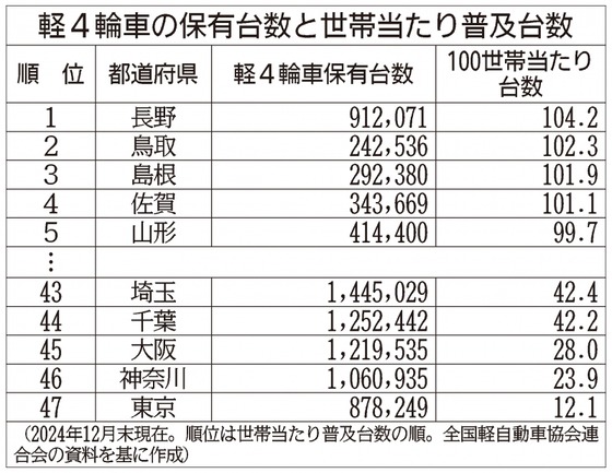 軽自動車が3年ぶりに普及率が減少…最も高い都道府県はこちら