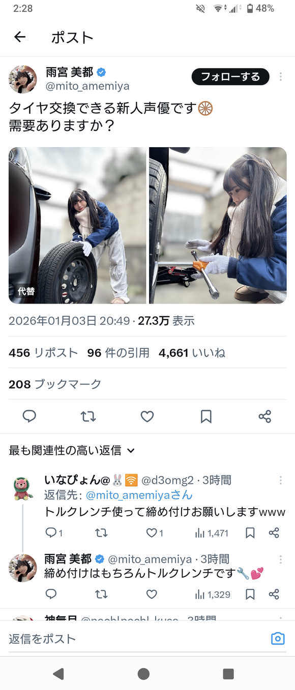 【画像】タイヤ交換出来る美少女声優現るwwwww