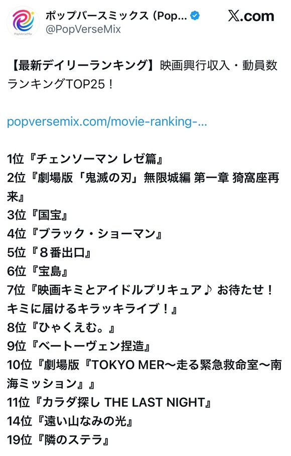 【速報】映画『チェンソーマン レゼ篇』初日興収、ガチでとんでもない数字を叩き出してしまう!