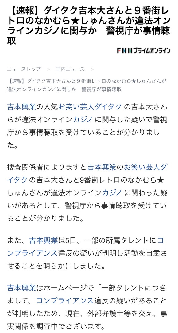 【悲報】吉本興業の人気芸人たち、オンカジ関与でイくwwwww