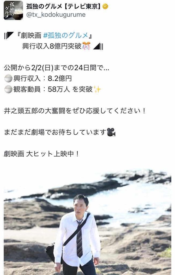 孤独のグルメアンチ死亡 興行収入8億円突破😢