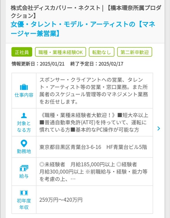 【朗報】橋本環奈さんの所属事務所がマネージャーを募集(月給18万5000円以上)