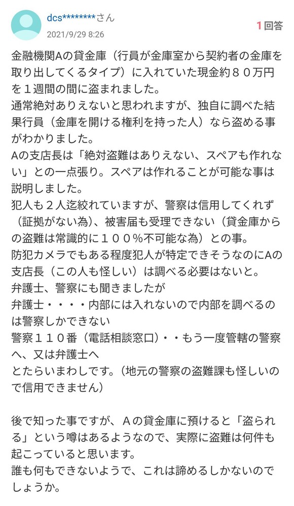 警察「貸金庫からお金とられるなんて日本であり得ない!被害届は受理できない!」→結果wwwwwwww