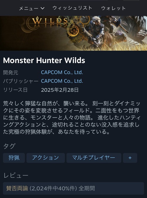 【悲報】Steam版モンハンワイルズ、まさかの賛否両論……