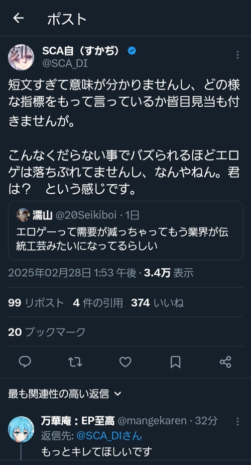 【悲報】大御所ヱロゲライター、ヱロゲの衰退を揶揄した一般人にブチギレ!!