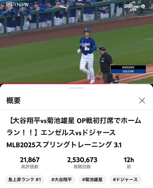 【朗報】大谷翔平さん、ただのオープン戦のハイライトが12時間で250万再生超えwwwww