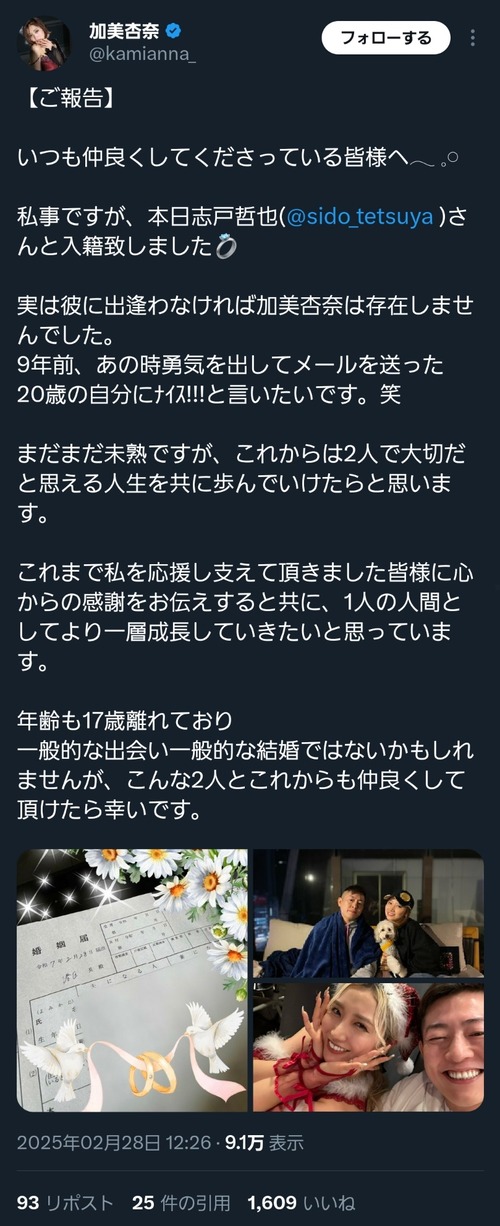 【画像】元セクシー女優 加美杏奈さん、デビュー作の男優と結婚///