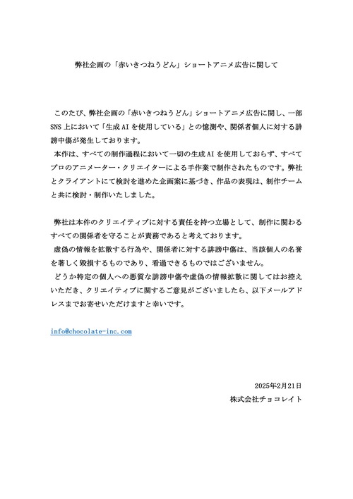 【速報】赤いきつねのCM、遂にアニメを企画した会社が声明を発表する