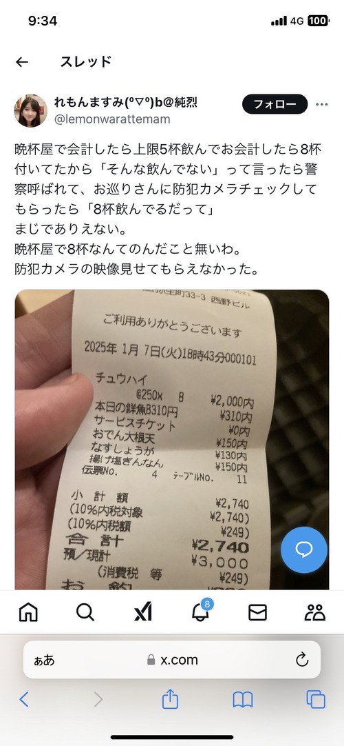 【悲報】女子様「居酒屋で5杯しか飲んでないのに8杯の値段取られた」→店「説明しよう!」