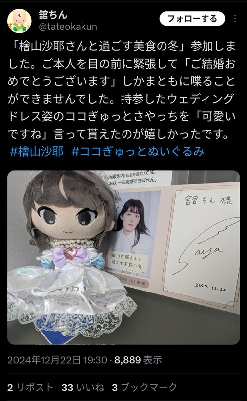 【大悲報】おさや(檜山沙耶)ファン、ウェディング姿のおさやぬいぐるみをおさやに披露してちまうw