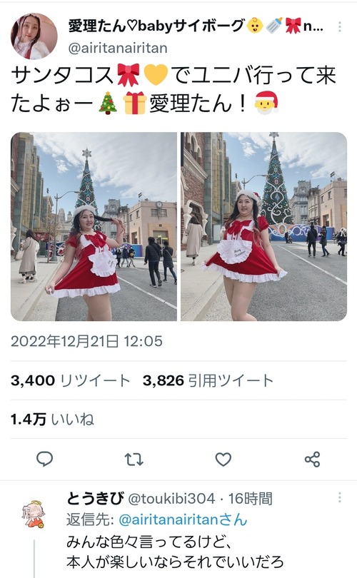 【画像】ユニバにえちえちサンタさんが現れ〇ンチラチャレンジw