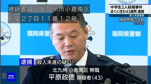 【速報】北九州マクド中学生殺傷事件、犯人の名前と住所が公開!!