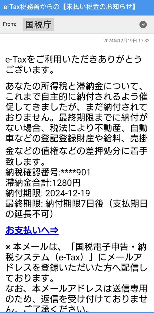 【悲報】ワイ、国税庁からメールが来る……!!【Help】