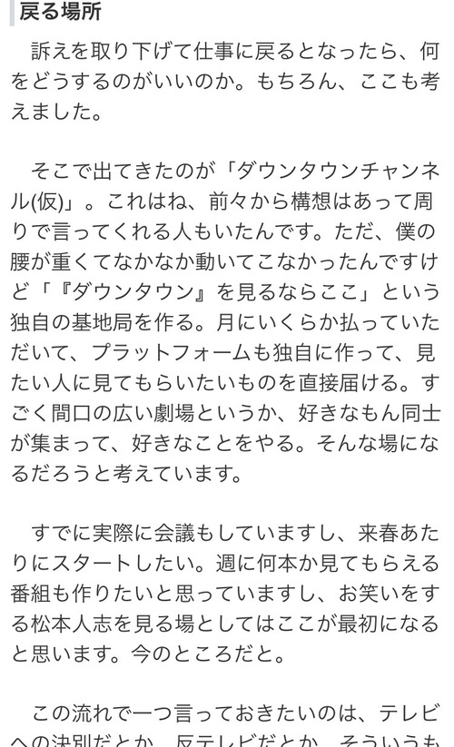 【あっ】松本「浜田とダウンタウンチャンネル(仮)やるわw」