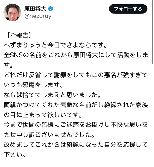 【悲報】「へずまりゅう」、逝く……