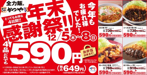 【朗報】かつやさん、明後日12/5から例のどれがお得か一目瞭然の年末感謝祭