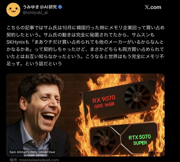 【悲報】世界的メモリ不足の犯人見つかるwwwww(画像あり)