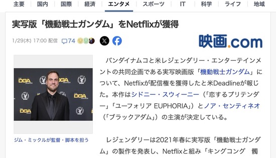 ハリウッド実写版「機動戦士ガンダム」、Netflixが配信権を獲得