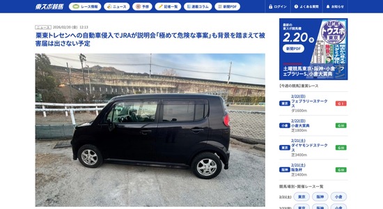 【悲報】女さん、自分の会社が分からなくなり栗東トレセンに車で侵入して爆走
