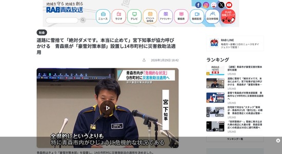 「道路に雪捨て、絶対ダメです。本当にやめて」青森県知事が協力呼びかけ