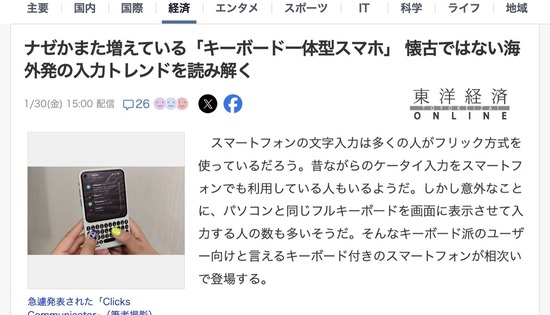 フルキーボード搭載のスマホ、発売へ