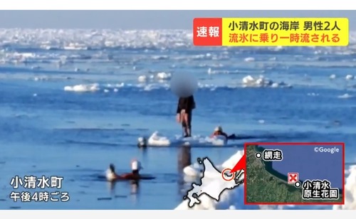 【画像】男性「あ、もしもし消防ですか?友達が流氷に乗ったまま流されちゃいましてw」→