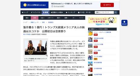 【映画】製作費61億円、トランプ大統領メラニア夫人の映画大爆死へ