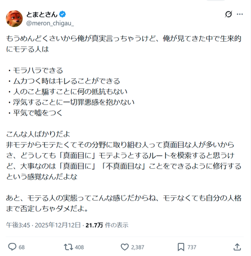【悲報】モテモテ強者男性の特徴、解説されるwwww